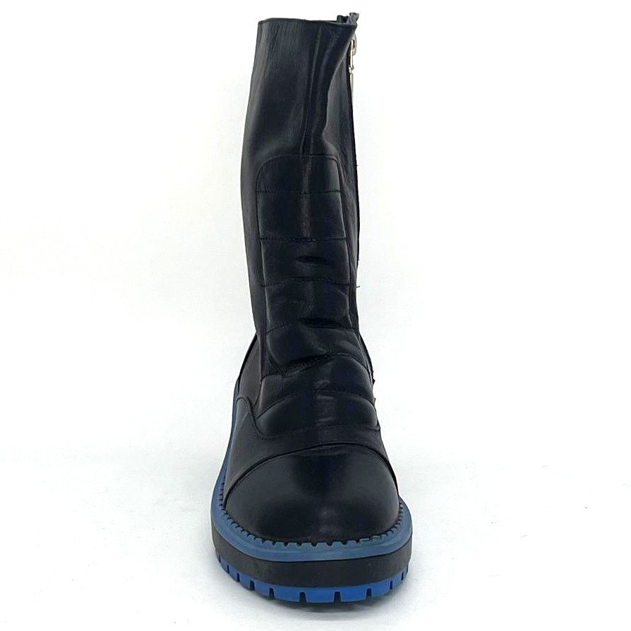 Black leather army boots featuring leather lining, cushioned insole, and 5.5 cm rugged sole—handcrafted for bold style and all-day comfort.