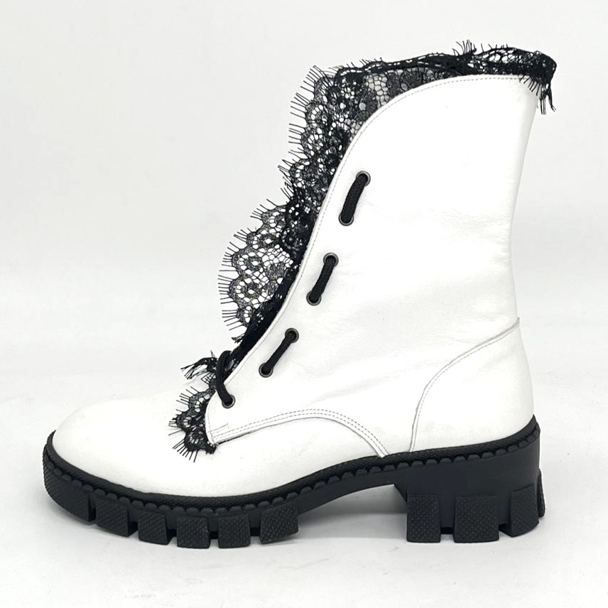 White leather combat boots featuring a cushioned insole, leather lining, and a rugged 5.5 cm sole—crafted for style, comfort, and confident everyday wear.