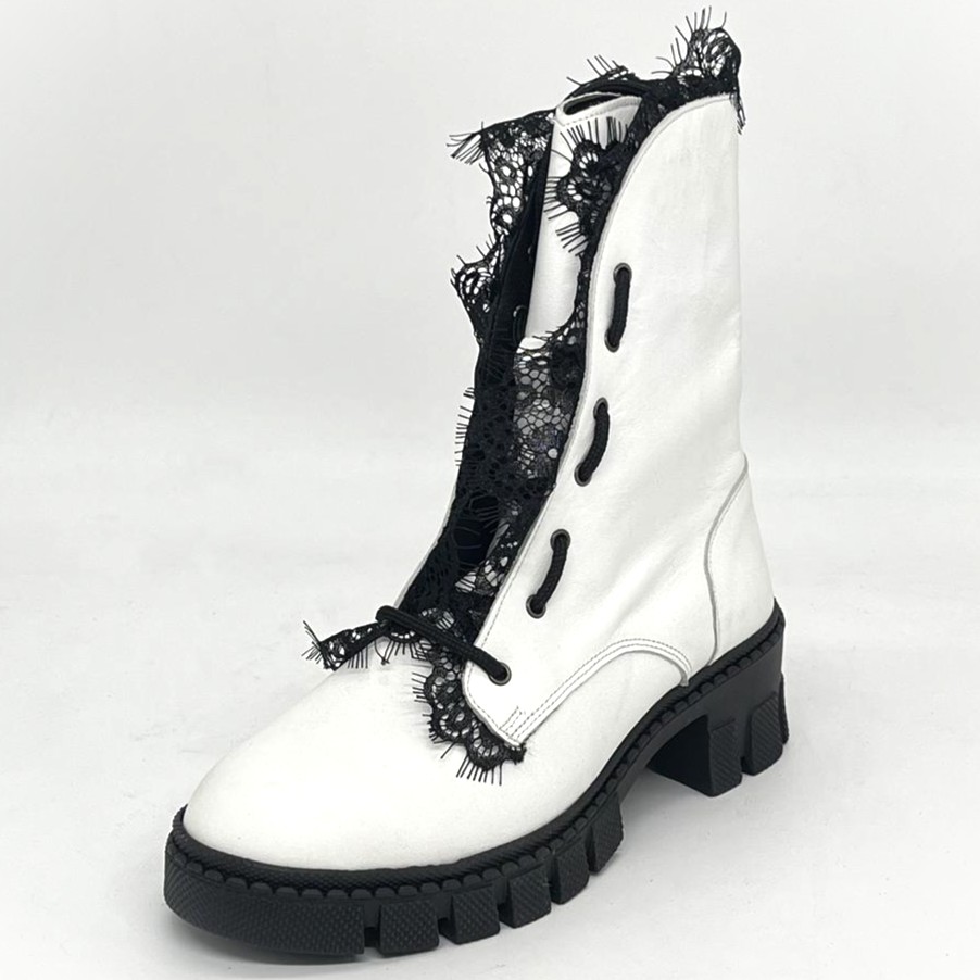 Add a bold metallic touch to your look with the White leather boot, crafted from high-quality white leather in a stylish combat boot silhouette. Designed for both style and comfort, they come with a leather lining and insole, along with a foam insert at the bottom for soft, cushioned steps. The rugged 5.5 cm black sole offers durability and a solid grip, perfect for making a confident statement in every stride.